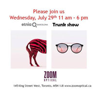 Hello Zoomers! The representative of Etnia Barcelona, Rami is hosting a Trunk Show at Zoom Optical this coming Wednesday, July 29th from 11:00am to 6pm!