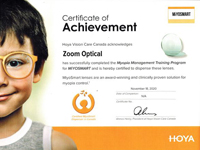 Zoom Optical is certified for MYOPIA CONTROL for children from Hoya